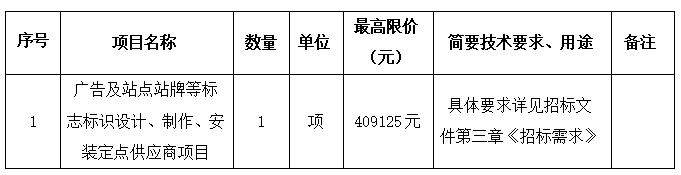項(xiàng)目名稱:廣告及站點(diǎn)站牌等標(biāo)志標(biāo)識設(shè)計(jì)、制作、安裝定點(diǎn)供應(yīng)商項(xiàng)目