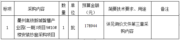 附件:衢州高鐵新城智慧產(chǎn)業(yè)園(一期)項目9#10#樓安裝紗窗采購項目詢價文件
