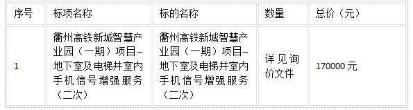 二、項目名稱:衢州高鐵新城智慧產(chǎn)業(yè)園(一期)項目--地下室及電梯井室內(nèi)手機信號增強服務(二次)