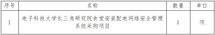 一、采購項目名稱:電子科技大學(xué)長三角研究院食堂安裝配電網(wǎng)絡(luò)安全管理系統(tǒng)采購項目